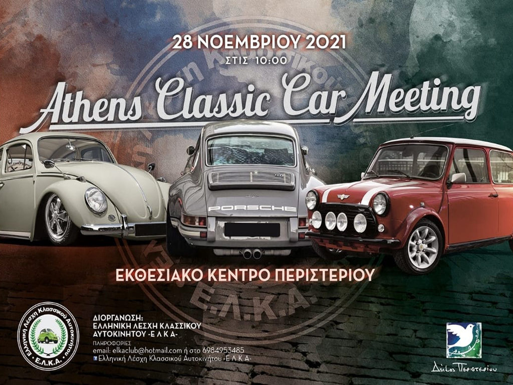 Στον υπαίθριο χώρο του Εκθεσιακού Κέντρου Περιστερίου θα διεξαχθεί η έκθεση «Athens Classic Car Meeting 2021», την Κυριακή 28 Νοεμβρίου 2021 στις 10:00 π.μ..