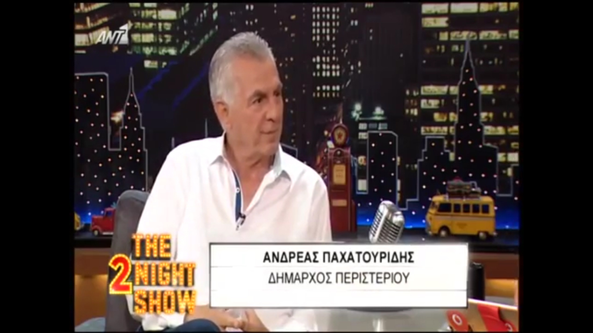 Τηλεοπτική εμφάνιση στην εκπομπή The2Nightshow πραγματοποίησε το βράδυ της Πέμπτης 9 Ιουνίου 2016 ο Δήμαρχος Περιστερίου, Ανδρέας Παχατουρίδης.
