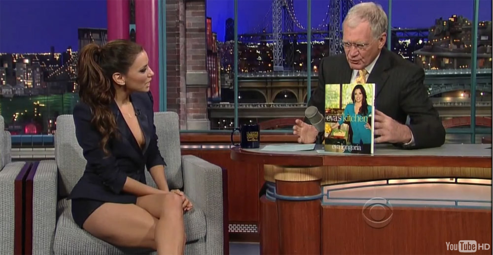 Η Έβα Λονγκόρια ανέβασε τη θερμοκρασία στην εκπομπή του Ντέιβιντ Λέτερμαν, εμφανιζόμενη με καυτό σορτς και ένα σακάκι.