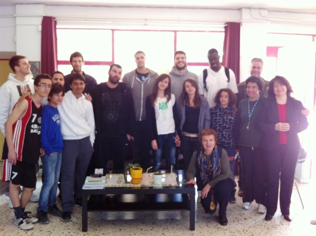 Ο Νώντας Παπαντωνίου, ο Χάρης Γιαννόπουλος, ο Σωτήρης Μανωλόπουλος, ο Γκέιβιν Εντουαρντς και ο Ερικ Μπόατενγκ έδωσαν το παρόν στη επίσκεψη αντιπροσωπείας της ομάδας στο 12ο Γυμνάσιο Περιστερίου και είχαν την ευκαιρία εκτός από το να δώσουν δωρεάν εισιτήρια στους μαθητές να συνομιλήσουν και να φωτογραφηθούν για αρκετή ώρα μαζί τους αλλά και να συζητήσουν με τους δασκάλους τους, τη Διευθύντρια του Γυμνασίου κα Νίκη Κούτα και τη γυμνάστρια κα Αικατερίνη Κολέτη.