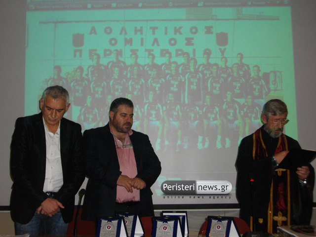 Αρχικά το λόγο πήρε ο πρόεδρος της ομάδας Παναγιώτης Μεϊντάνης δηλώνοντας ότι ο Α.Ο. Περιστερίου είναι μια μεγάλη οικογένεια που δεν πριμοδοτείται από κανένα, για το λόγο αυτό η ομάδα αποτελείται από νέα παιδιά και δεν δαπανά υπέρογκα ποσά στην απόκτηση επαγγελματιών ποδοσφαιριστών. Η ομάδα θα συνεχίσει να αποτελεί έναν άξιο πρεσβευτή της πόλης συνεχίζοντας τις επιτυχίες.