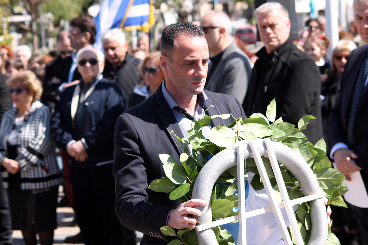 Ακολούθησε η ομιλία του Δημάρχου Περιστερίου Ανδρέα Παχατουρίδη, κατάθεση στεφάνων, τήρηση ενός λεπτού σιγής και ανάκρουση του Εθνικού Ύμνου από τη Φιλαρμονική του Δήμου Περιστερίου.