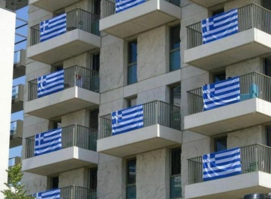 Το ελληνικό στοιχείο, το σθένος, η τόλμη, η ψυχή, δεσπόζουν σε κάθε μπαλκόνι διαμερίσματος στο Ολυμπιακό Χωριό του Λονδίνου.