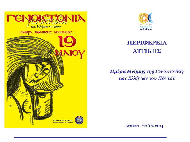 Την Ημέρα Μνήμης της Γενοκτονίας των Ελλήνων του Πόντου τιμά η Περιφέρεια Αττικής μαζί με την Παμποντιακή Ομοσπονδία Ελλάδος μέσα από μια σειρά εκδηλώσεων. Την Κυριακή 11 Μαΐου 2014 και ώρα 11.30 θα τελεστεί Επιμνημόσυνη Δέηση στον Ιερό Ναό του Αγίου Διονυσίου Αρεοπαγίτου και στη συνέχεια θα ακολουθήσει κατάθεση στεφάνων στο Μνημείο του Άγνωστου Στρατιώτη.