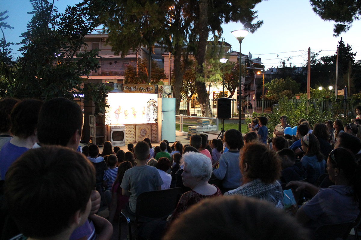 Η πρώτη εκδήλωση που διοργανώθηκε από τον Δήμο Περιστερίου ήταν μια όμορφη παράσταση σκιών, με τίτλο, “Ο Καραγκιόζης παγωτατζής” από το θίασο του Ηλία Καρελλά.