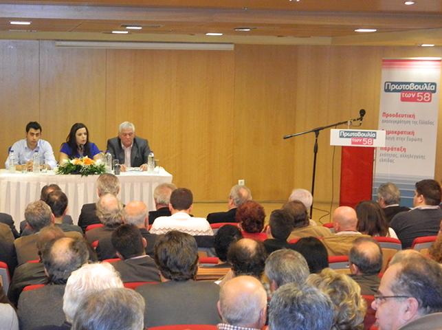 Η πρωτοβουλία των 58 πραγματοποίησε πολιτική εκδήλωση στο αμφιθέατρο του Δημαρχείου Περιστερίου, σε μια κατάμεστη αίθουσα.