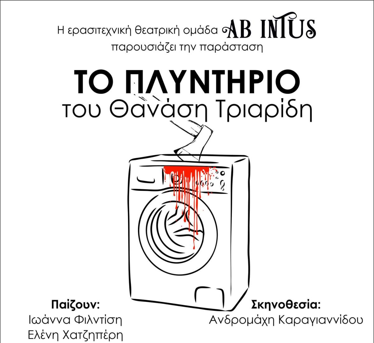 Η ερασιτεχνική θεατρική ομάδα Ab Intus επιστρέφει στη σκηνή τον Δεκέμβριο με το έργο «Το Πλυντήριο» του Θανάση Τριαρίδη, πραγματοποιώντας τρεις προγραμματισμένες παραστάσεις.