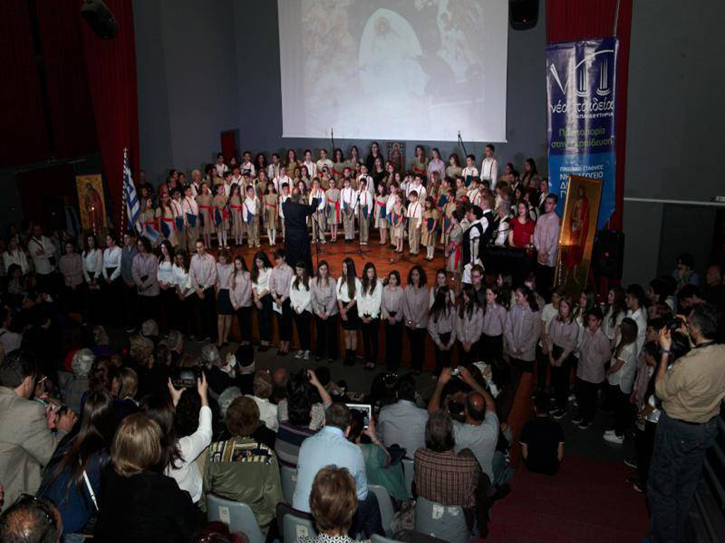 Η συνεργασία επί σκηνής της χορωδίας του Ιερού Ναού Αγ. Κων/νου και Ελένης Μάνδρας Αττικής υπό τη διεύθυνση του πρωτοψάλτου κ. Κων/νου Σούλη, της χορωδίας του Αγ. Κων/νου των Παμμεγίστων Ταξιαρχών (ΜΑΣΧΑ) της Ιεράς Μητροπόλεως Περιστερίου και ειδικά της παιδικής χορωδίας των Εκπαιδευτηρίων Νέα Παιδεία (αποτελούμενη από μαθητές Γ’ – ΣΤ’ Δημοτικού) έγινε με απόλυτη αρμονία και προσέφεραν σε όλους μία πρόγευση από τα Άχραντα Πάθη του Κυρίου μας. Η συμμετοχή μαθητών Γυμνασίου – Λυκείου στην απαγγελία κειμένων παρουσιάζοντας τη ροή των Ύμνων αλλά και συμμετοχή της ποιήτριας Καλυψούς Δημητριάδη συνέβαλε στη κατανυκτική ατμόσφαιρα της εκδήλωσης.