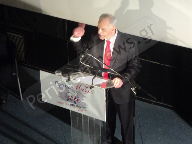 Στην κατάμεστη αίθουσα του κινηματογράφου “ΦΟΙΒΟΣ” παρουσία του Σεβασμιωτάτου Μητροπολίτου Περιστερίου Xρυσόστομου πραγματοποιήθηκε την 15ην Ιανουαρίου 2012, η Ιδρυτική διακήρυξη της νεοϊδρυθείσας Δημοτικής Παράταξης “ Περιστέρι Μαζί Ενάντια στο Κατεστημένο”, με κεντρικό ομιλητή τον ιδρυτή της παράταξης και υποψήφιο Δήμαρχο, Γιώργο Βαθιώτη.