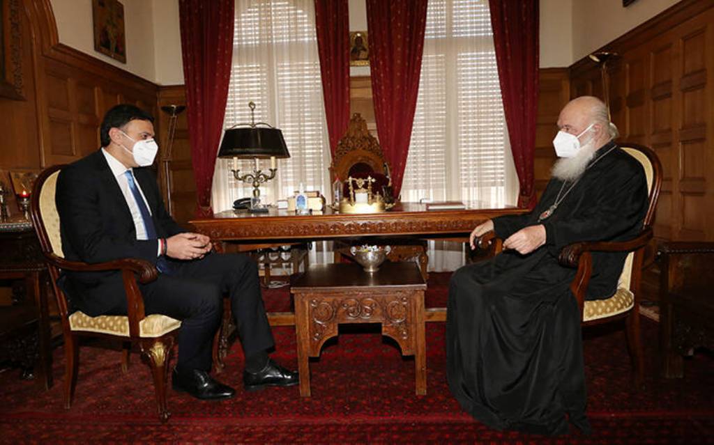 Ο υπουργός ευχαρίστησε τον Αρχιεπίσκοπο για την συνάντηση και του ευχήθηκε υγεία, ενώ τόνισε πως βρισκόμαστε στην καρδιά της μάχης.