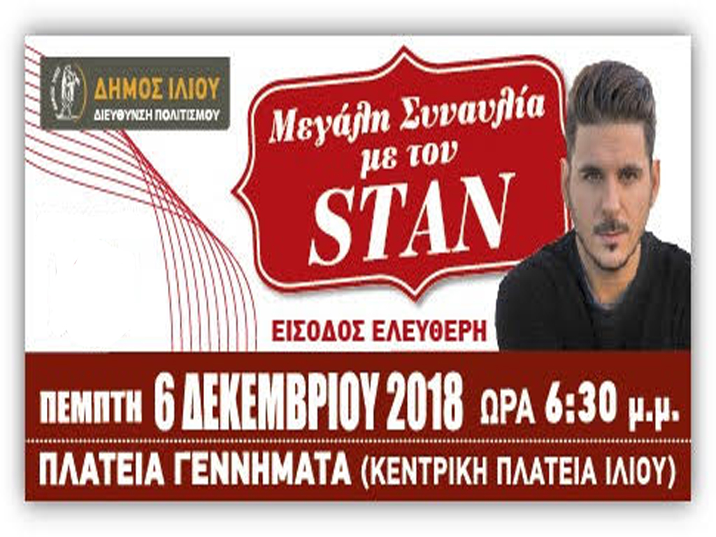 Η εκδήλωση θα πραγματοποιηθεί την Πέμπτη 6 Δεκεμβρίου στις 18.30 στην πλατεία Γεννηματά (Κεντρική πλατεία Ιλίου) θα ακολουθήσει μεγάλη συναυλία με τον πολυαγαπημένο καλλιτέχνη της νεολαίας STAN.