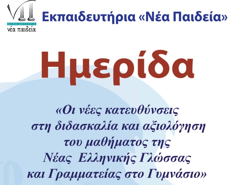 Τα Εκπαιδευτήρια «Νέα Παιδεία» διοργανώνουν Ημερίδα με θέμα : «Οι νέες κατευθύνσεις στη διδασκαλία και αξιολόγηση του μαθήματος της Νέας Ελληνικής Γλώσσας και Γραμματείας στο Γυμνάσιο».