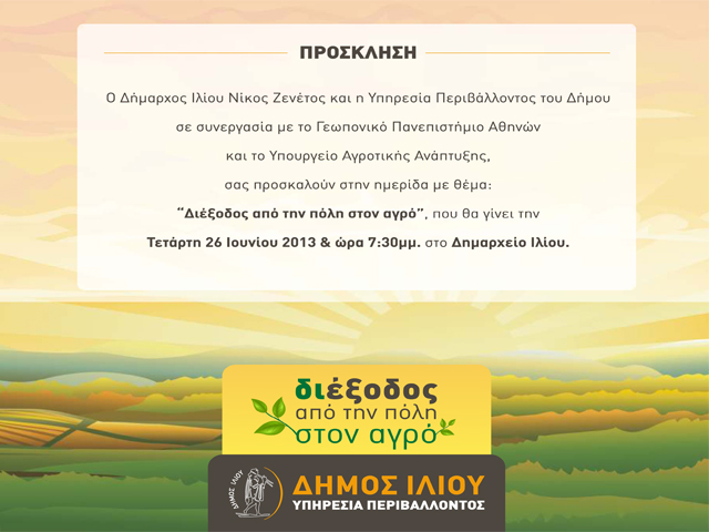 Δυτική ΑθήναΗμερίδα με θέμα: «διέξοδος από την πόλη στον αγρό» στο Ίλιον by Peristeri News18, Ιούνιος, 201315, Απρίλιος, 2021 Share0 Την Τετάρτη 26 Ιουνίου στις 19.30 στο Δημαρχείο Ιλίου. Κάντε εγγραφή στο κανάλι του PeristeriNews.gr στο Viber ή επικοινωνήστε άμεσα μαζί μας εδώ