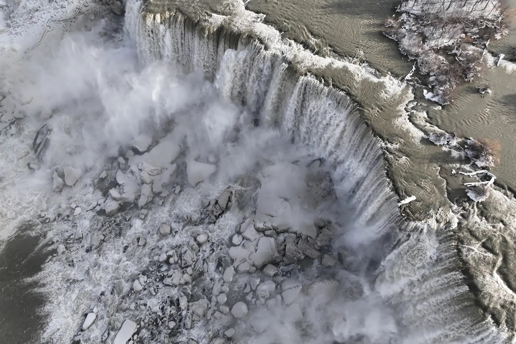 Φωτογραφίες και βίντεο που κάνουν τον γύρο του διαδικτύου, “κόβουν” την ανάσα, καθώς δείχνουν κύματα παγωμένης ομίχλης και στρώματα πάγου να καλύπτουν μέρη των καταρρακτών.