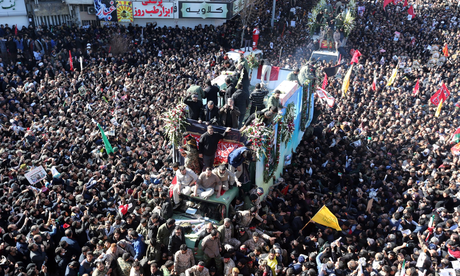 Η σορός του υποστράτηγου Κασέμ Σουλεϊμανί είχε μεταφερθεί στην πόλη Κερμάν, στο νοτιοδυτικό Ιράν, όπου και θα ταφεί. Η ιρανική κρατική τηλεόραση μετέδιδε από νωρίς το πρωί σε απευθείας σύνδεση πλάνα με εκατοντάδες χιλιάδες ανθρώπους, πολλούς στα μαύρα, που κατέκλυσαν τους δρόμους της Κερμάν για να θρηνήσουν τον ανώτατο αξιωματικό, ο οποίος για ορισμένους αναλυτές ήταν ατύπως ο δεύτερος ισχυρότερος άνθρωπος στη χώρα.