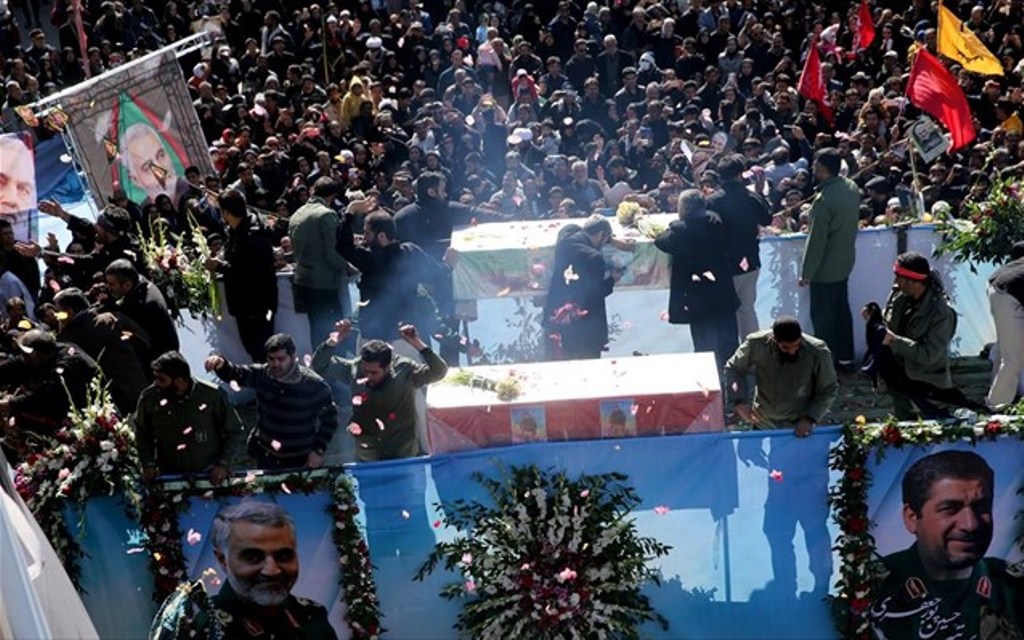 Η σορός του Σουλεϊμανί, εθνικού ήρωα που ο θάνατός του έχει ενώσει πολλούς Ιρανούς, είχε μεταφερθεί σε ιρακινές και ιρανικές πόλεις προτού φθάσει στη Κερμάν για να ενταφιαστεί.