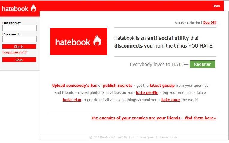 Το Ηatebook είναι στην ουσία ο κακός αδερφός του Facebook το οποίο είναι ειδικά φτιαγμένο γι’ αυτούς που μισούν τα κοινωνικά δίκτυα, τους αντικοινωνικούς!
