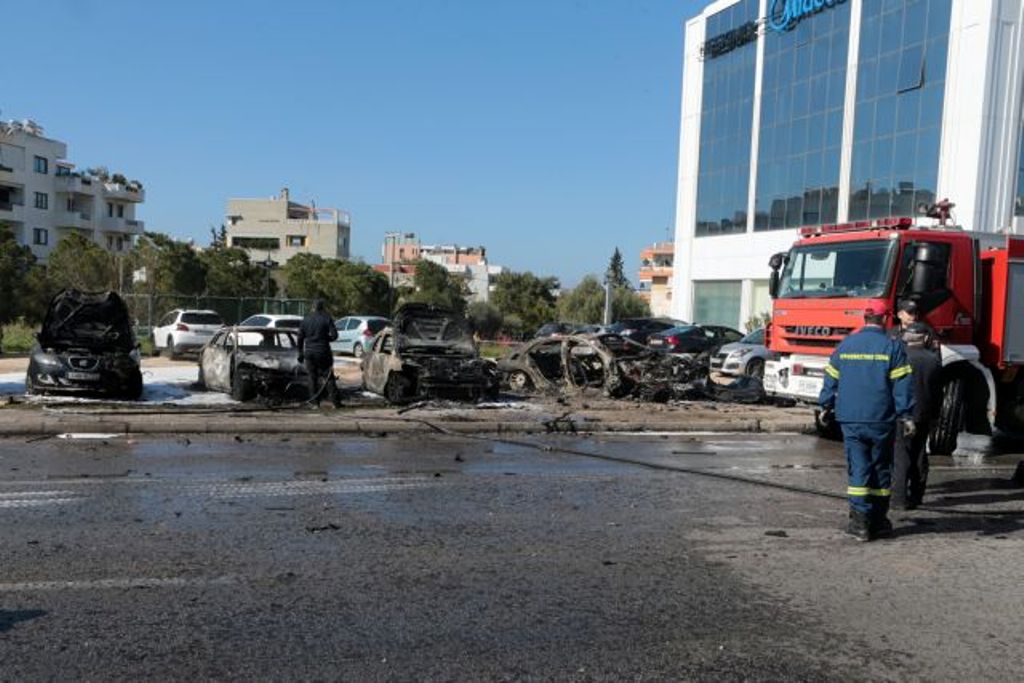 Ισχυρή έκρηξη σημειώθηκε σε υπαίθριο πάρκινγκ της Γλυφάδας, στην Λεωφ. Βουλιαγμενης 127, με αποτέλεσμα να πιάσουν φωτιά τέσσερα Ι.Χ. και να τραυματιστεί ένα άτομο.