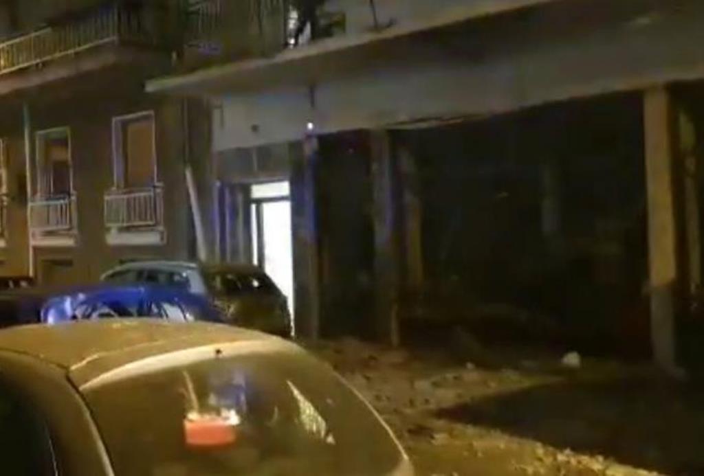 Το ωστικό κύμα από την έκρηξη της βόμβας προκάλεσε εκτεταμένες υλικές ζημιές στο κατάστημα, στην είσοδο διπλανής πολυκατοικίας αλλά και σε σταθμευμένα οχήματα.