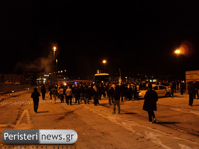 Ο κόσμος του Περιστερίου υποδέχθηκε την ομάδα στα διόδια Αγ. Στεφάνου και την οδήγησε στο Περιστέρι