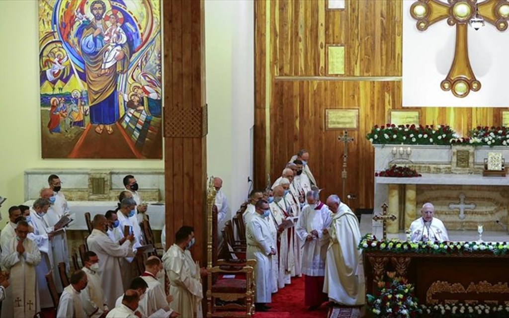 Ο Πάπας Φραγκίσκος τέλεσε σήμερα την πρώτη λειτουργία του ταξιδιού του στο Ιράκ, στη Βαγδάτη, ενώπιον πιστών και επισήμων, οι οποίοι στέκονταν αραιά μεταξύ τους λόγω της πανδημίας του κορωνοϊού, σύμφωνα με δημοσιογράφους του Γαλλικού Πρακτορείου.