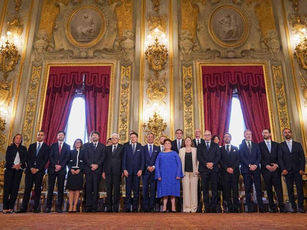 Οι δέκα υπουργοί του Κόμματος Πέντε Αστέρων (M5S), οι εννέα του Δημοκρατικού Κόμματος (PD), το μεγαλύτερο κόμμα της αριστεράς καθώς και ένας από το μικρό αριστερό κόμμα Ελεύθεροι και Ίσοι (LEU) και η υπουργός Εσωτερικών, που δεν ανήκει σε κάποιο κόμμα, ορκίστηκαν, πίστη στη Δημοκρατία, στο Σύνταγμα και στους νόμους.