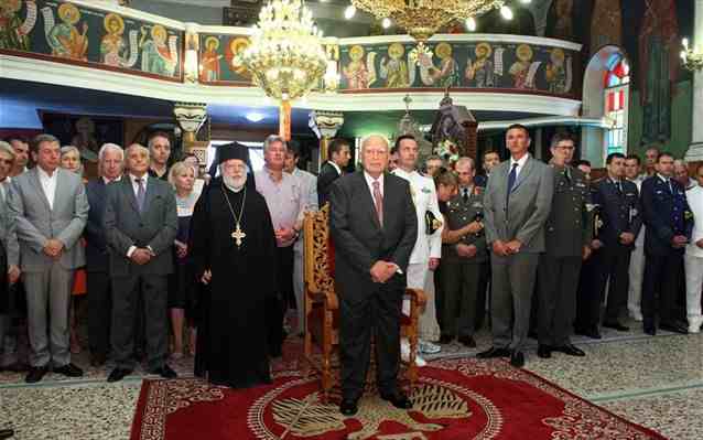 Συνοδευόμενος από τη σύζυγό του Γεωργία, ο κ. Σαμαράς παρακολούθησε τη Θεία Λειτουργία και τη δοξολογία στη μνήμη της Μεγαλόχαρης, στον ιερό ναό της Παναγίας της Μυρτιδιώτισσας.