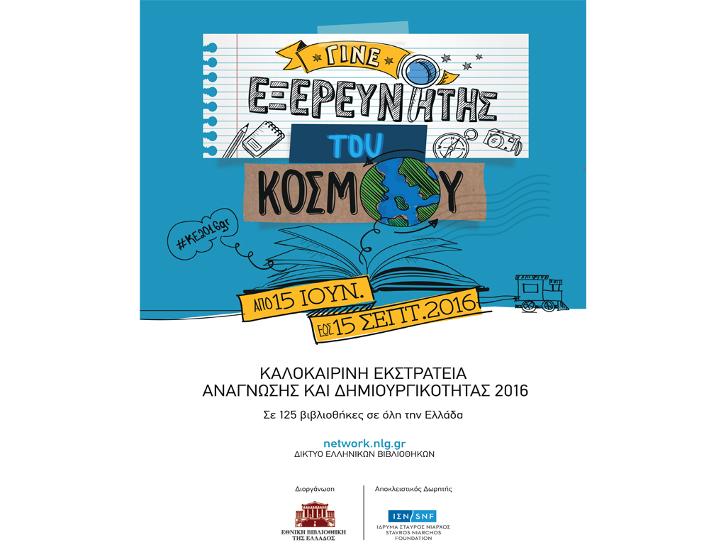 ως μέλος του Δικτύου Ελληνικών Βιβλιοθηκών της Εθνικής Βιβλιοθήκης της Ελλάδος, διοργανώνει μια «εκστρατεία» με τίτλο «Γίνε εξερευνητής του κόσμου» και προσκαλεί γονείς και παιδιά να αναλαμβάνουν καθημερινά μία αποστολή: με αφετηρία τη βιβλιοθήκη και οδηγό ένα προσωπικό ημερολόγιο εξερεύνησης, παρατηρούμε, συγκρίνουμε, καταγράφουμε και δημιουργούμε, γνωρίζοντας τον κόσμο με τον δικό μας τρόπο.