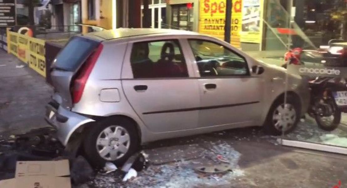 Αυτό με τη σειρά του προσέκρουσε σε σταθμευμένο αυτοκίνητο, παρέσυρε μια μοτοσικλέτα και μαζί κατέληξαν σε τζαμαρία καφετέριας.