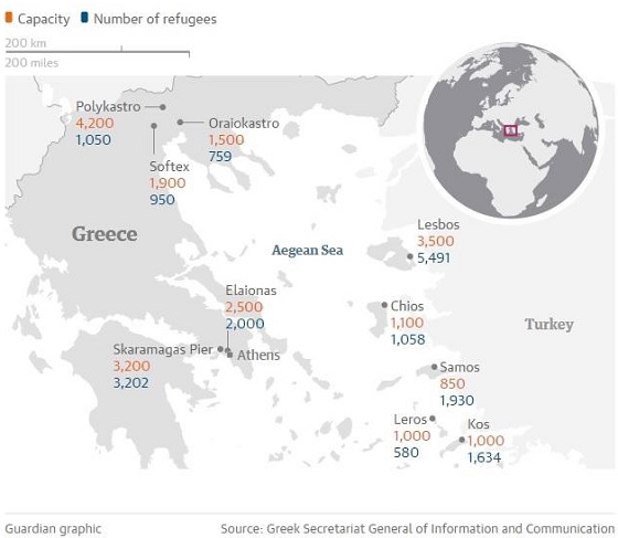 Περίπου 62.000 πρόσφυγες βρίσκονται αποκλεισμένοι στην Ελλάδα, μετά το κλείσιμο των συνόρων από τις χώρες της κεντρικής Ευρώπης. Εξ αυτών, περίπου 5.500 βρίσκονται στη Λέσβο.