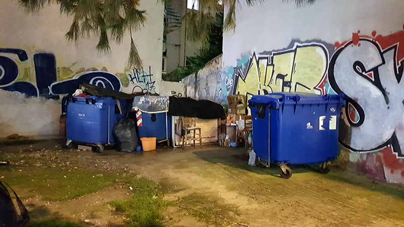 Η συγκεκριμένη σκληρή εικόνα της άστεγης γυναίκας είναι στην οδό Βασιλέως Αλεξάνδρου(και Επιδαύρου) σε γωνιακό οικόπεδο και η κατάσταση κρίνεται ιδιαίτερα κρίσιμη αφού οι ακραίες καιρικές συνθήκες με ισχυρές βροχές και τσουχτερό κρύο θα έχουν κάνει τη διαβίωση της γυναίκας πολύ δύσκολη.