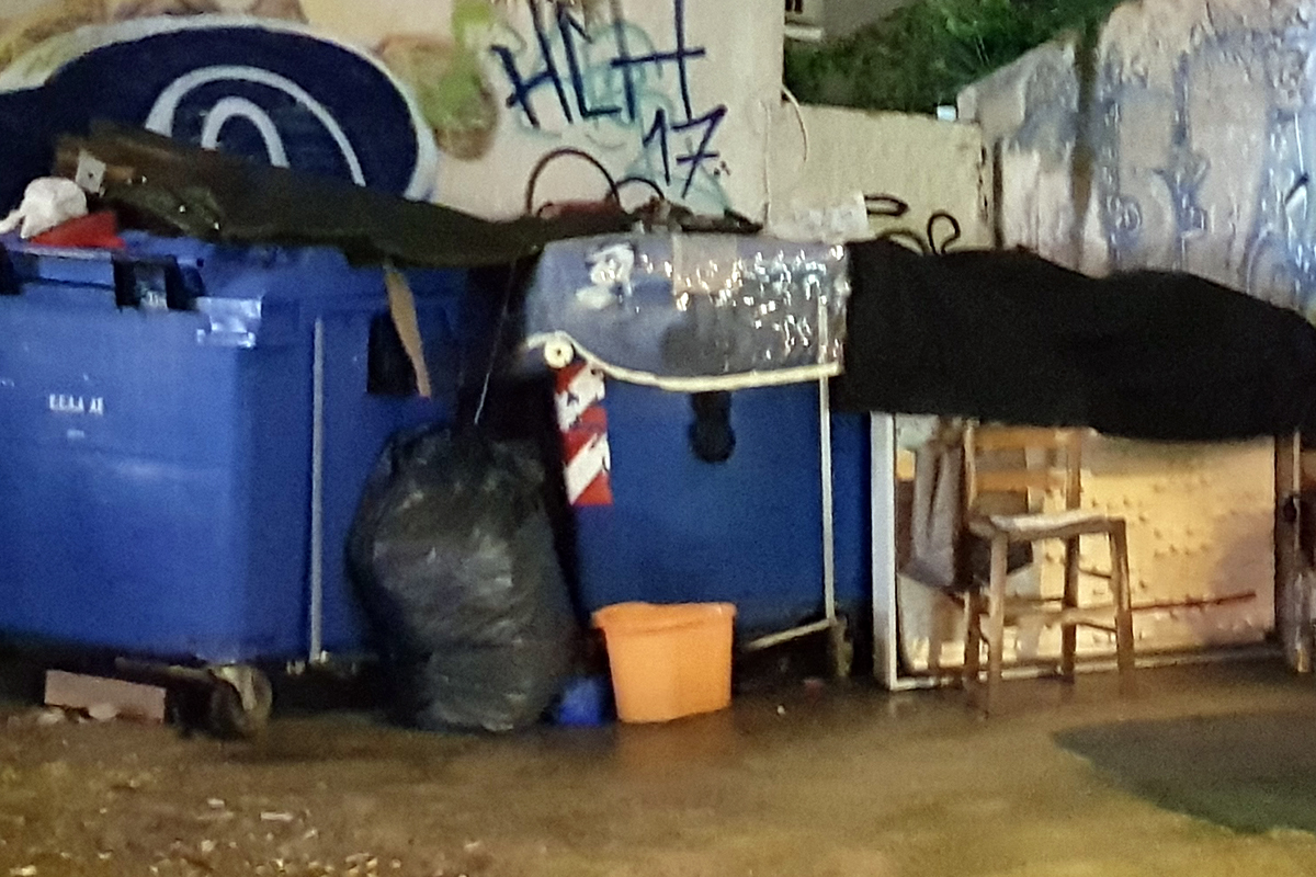 Η αναγνώστρια και δημότης του Περιστερίου μας υπέδειξε τις άθλιες συνθήκες διαβίωσης μιας άπορης γυναίκας που όπως μας ανέφερε από το καλοκαίρι έχει δημιουργήσει ένα “κατάλυμα” με κάδους απορριμμάτων και χαρτόκουτα.