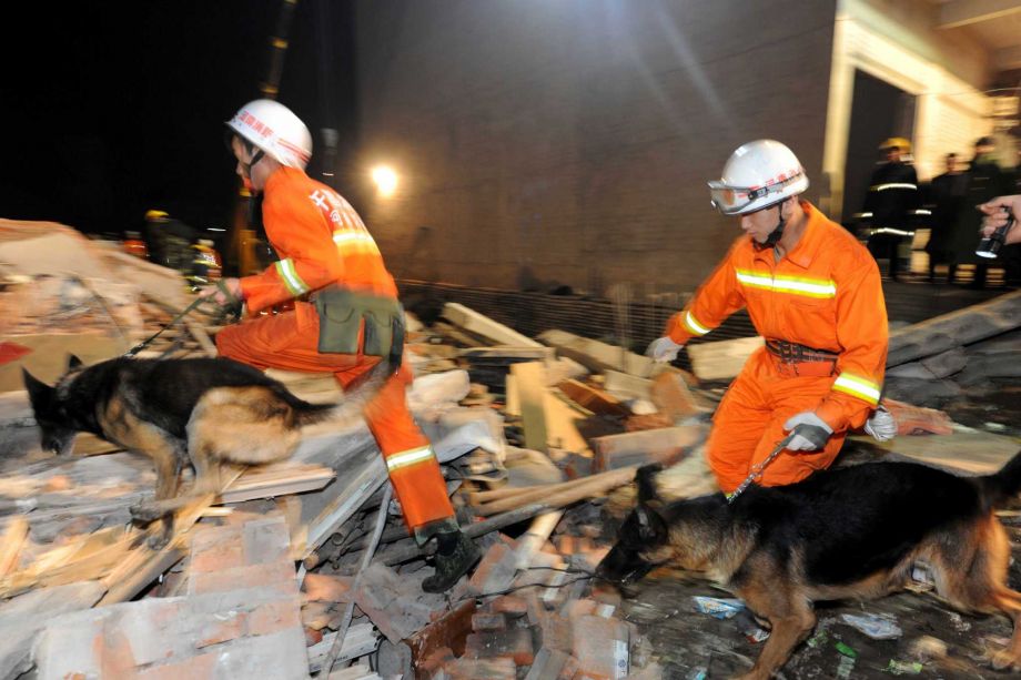 Η κινεζική κρατική τηλεόραση μετέδωσε εικόνες που απεικονίζουν πυροσβέστες να ψάχνουν στα συντρίμμια για επιζώντες.
