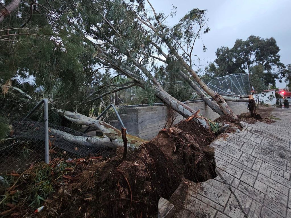 Πολλά δέντρα έπεσαν από την μανία του αέρα προκαλώντας ζημιές σε τοίχους και αυτοκίνητα.
