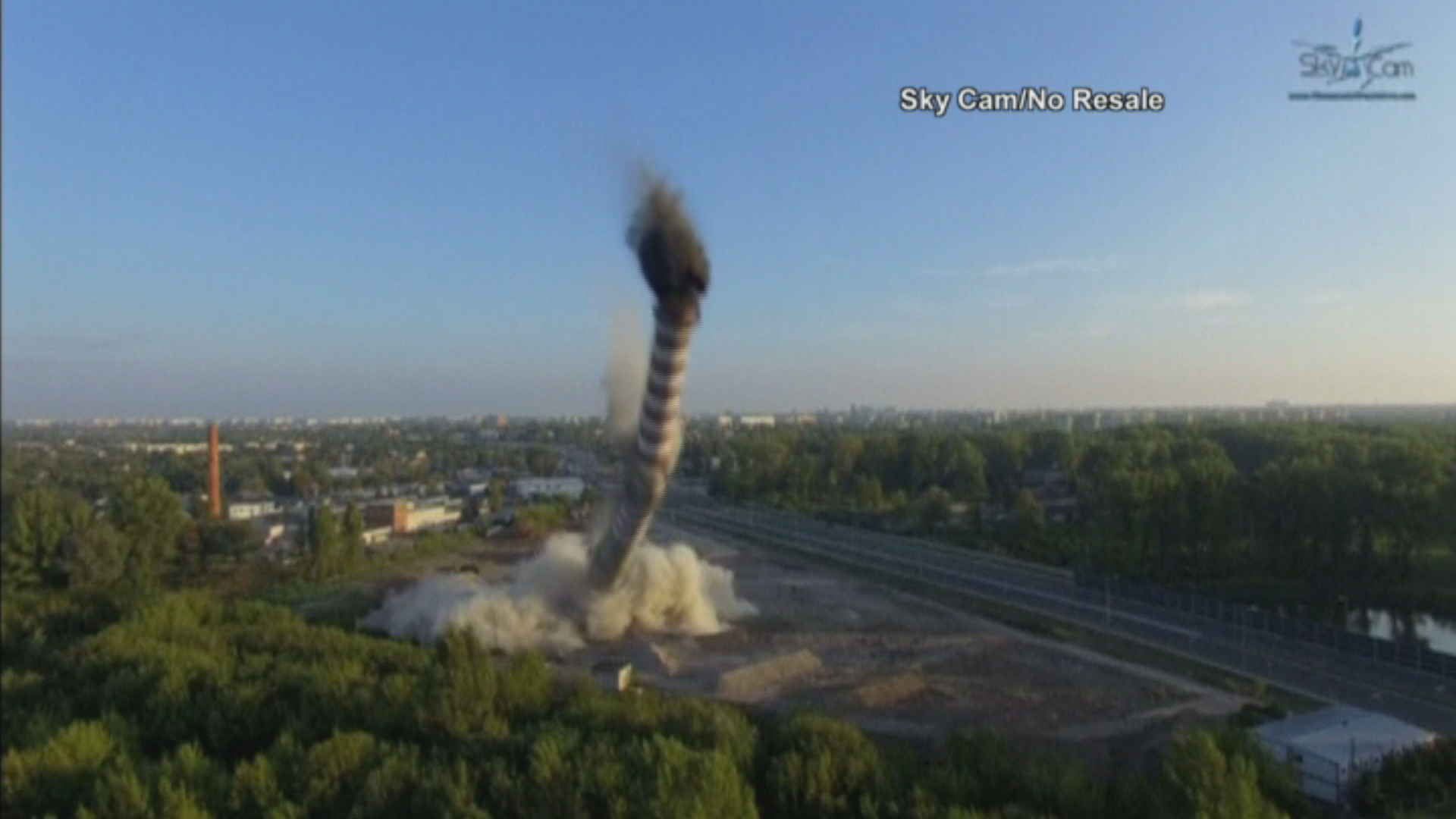 Στην κατεδάφιση της καμινάδας ενός παλιού εργοστασίου, η οποία είχε ύψος 140 μέτρων, προχώρησαν οι αρχές στο Λοτζ της Πολωνίας.