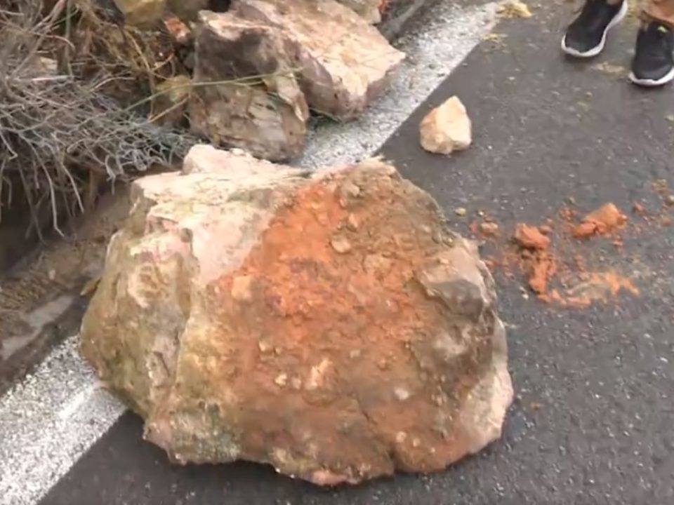 Λόγω της κατολίσθησης έχει διακοπεί η κυκλοφορία των οχημάτων στη δεξιά λωρίδα στο ανώτερο σημείο.
