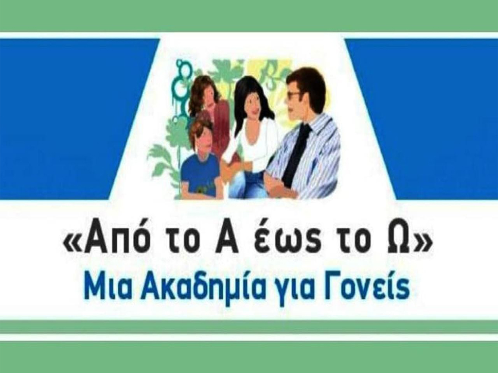 To ΚΕΠ Υγείας Δήμου Περιστερίου που συμμετέχει ενεργά στο Ελληνικό Διαδημοτικό Δίκτυο Υγιών Πόλεων (ΕΔΔΥΠΠΥ), σας καλεί να παρακολουθήσετε το πρόγραμμα προαγωγής υγείας «Από το Α έως το Ω: μία Ακαδημία για Γονείς», το οποίο πραγματοποιείται για 7η συνεχή χρονιά από τη Μονάδα Εφηβικής Υγείας της Β’ Παιδιατρικής Κλινικής του Πανεπιστημίου Αθηνών Νοσοκομείο Παίδων «Π & Α Κυριακού».