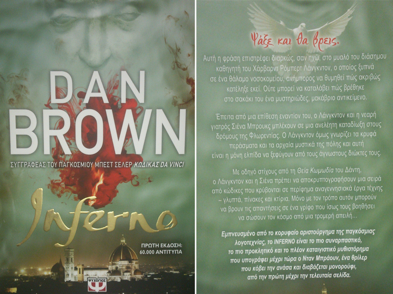 Εμπνευσμένο από το κορυφαίο αριστούργημα της παγκόσμιας λογοτεχνίας, το INFERNO είναι το πιο συναρπαστικό, το πιο προκλητικό και το πλέον καταιγιστικό μυθιστόρημα που υπογράφει μέχρι τώρα ο Νταν Μπράουν, ένα θρίλερ που κόβει την ανάσα και διαβάζεται μονορούφι, από την πρώτη μέχρι την τελευταία σελίδα.