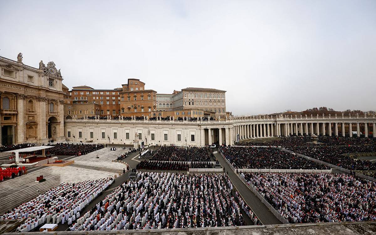 Χιλιάδες πιστοί συγκεντρώθηκαν στην πλατεία του Αγίου Πέτρου στο Βατικανό για την κηδεία του πρώην Πάπα Βενέδικτου ΙΣΤ’.