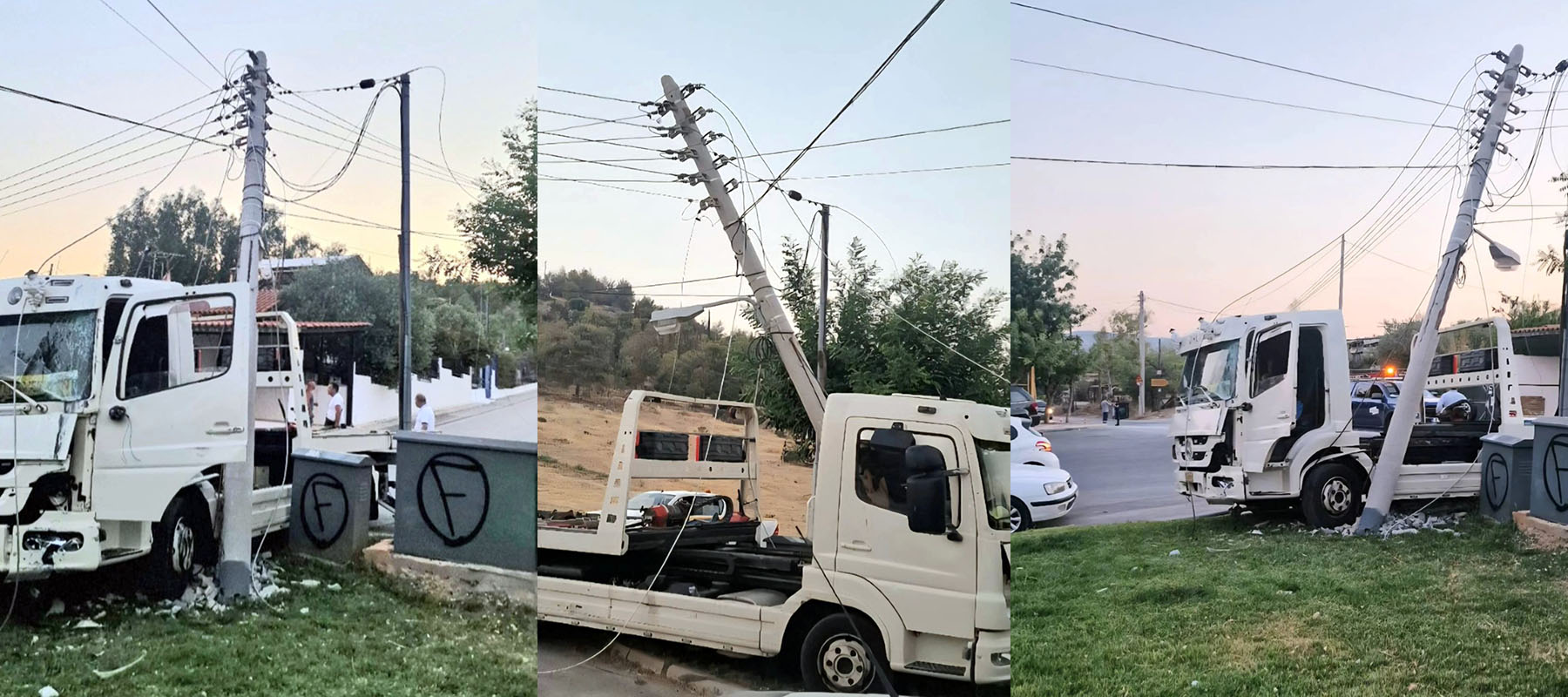 Το βαρύ όχημα τελικά ακινητοποιήθηκε όταν προσέκρουσε σε κολώνα της ΔΕΗ, προκαλώντας μόνο υλικές ζημιές.