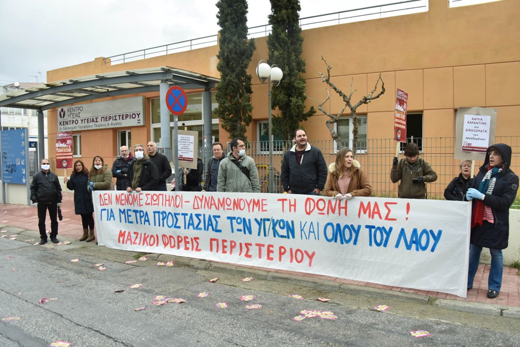 Την κινητοποίηση στήριξαν σωματεία και μαζικοί φορείς της Δυτικής Αθήνας, ενώ παραβρέθηκαν ο Γιάννης Πρωτούλης, μέλος του ΠΓ της ΚΕ του ΚΚΕ και ο Νίκος Παπαναστάσης, βουλευτής του ΚΚΕ, οι οποίοι σε σύντομους χαιρετισμούς τους εξέφρασαν την συμπαράσταση του Κόμματος στα δίκαια αιτήματα των υγειονομικών. Εξάλλου, σύντομους χαιρετισμούς απηύθυναν εκπρόσωποι των υγειονομικών, των σωματείων και των φορέων.