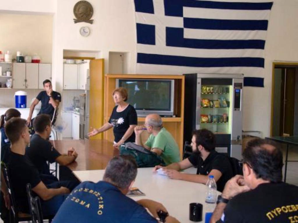 Στο 10ο Πυροσβεστικό Σταθμό Αθήνας που εδρεύει στο Περιστέρι περιόδευσε το πρωί, της Πέμπτης 9 Αυγούστου, η Διαμάντω Μανωλάκου μέλος της ΚΕ και βουλευτής του ΚΚΕ.