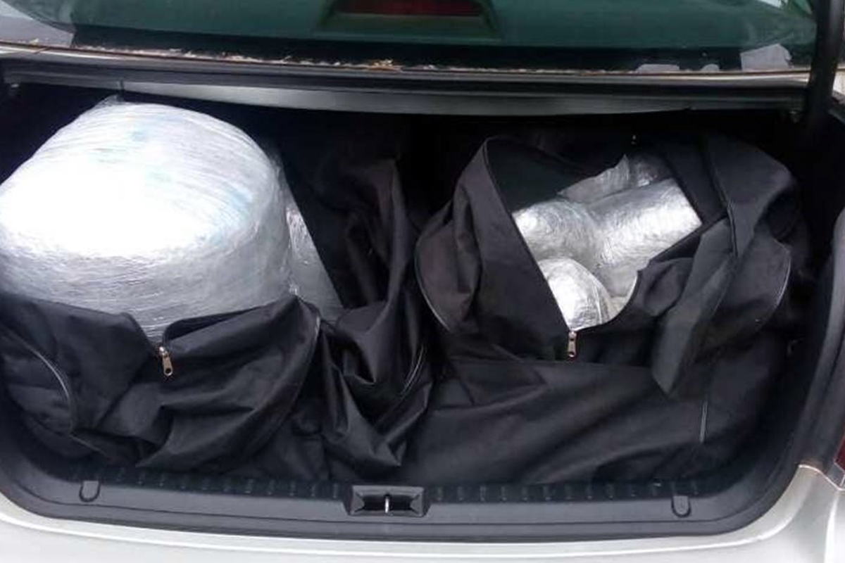 Μόλις άνοιξαν το πορτ-μπαγκάζ του, βρήκαν μέσα δυο σάκους που περιείχαν 26 δέματα με ακατέργαστη κάνναβη βάρους 43 κιλών και 380 γραμμαρίων, τα οποία προφανώς ο οδηγός είχε παραλάβει από παραμεθόρια περιοχή.