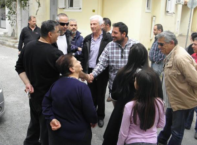 Κοινή περιοδεία της «Αλληλέγγυας Πόλης» και των «Ενεργών Πολιτών για την Ανατροπή στο Περιστέρι» με τους δύο επικεφαλής των παρατάξεων, Κ.Κάβουρα και Φ.Κουγιουμτζή, πραγματοποιήθηκε την Κυριακή 6/4/2014 στα όρια του δήμου Περιστερίου με το δήμο Ιλίου.