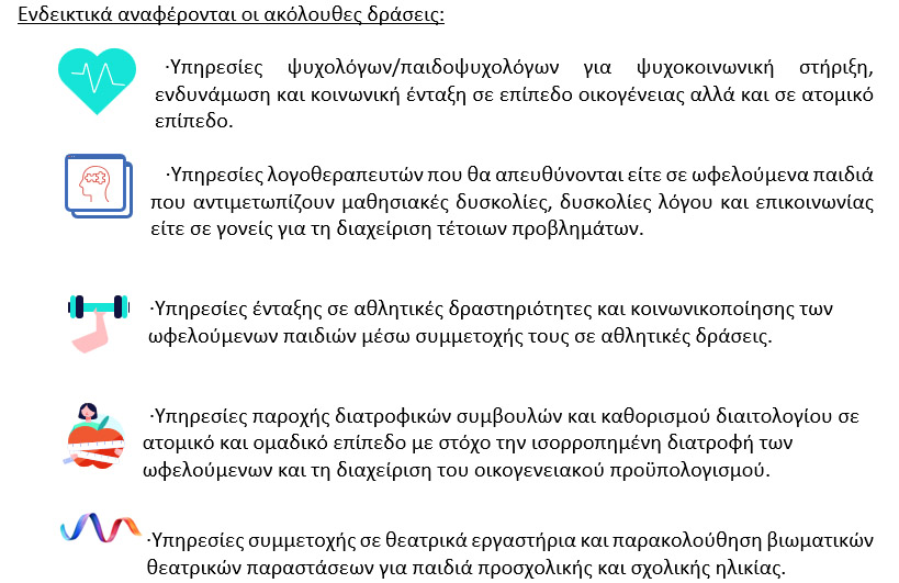 Στο πλαίσιο υλοποίησης των Συνοδευτικών Δράσεων του Ε.Π. Επισιτιστικής και Βασικής Υλικής Συνδρομής ΤΕΒΑ έτους 2022 (1η φάση), θα παρασχεθούν σε ωφελούμενα μέλη οικογενειών συνοδευτικές υποστηρικτικές υπηρεσίες με τη συνδρομή κοινωνικών επιστημόνων και συνεργατών στους Δήμους – Εταίρους της Σύμπραξής μας.