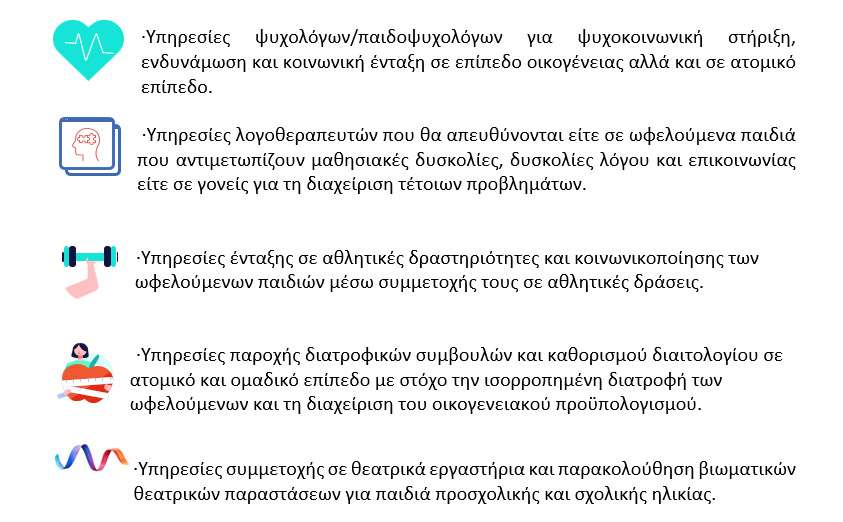 Στο πλαίσιο υλοποίησης των Συνοδευτικών Δράσεων του Ε.Π. Επισιτιστικής και Βασικής Υλικής Συνδρομής ΤΕΒΑ, θα παρασχεθούν σε ωφελούμενα μέλη οικογενειών συνοδευτικές υποστηρικτικές υπηρεσίες με τη συνδρομή κοινωνικών επιστημόνων και συνεργατών στους Δήμους – Εταίρους της Σύμπραξής μας.