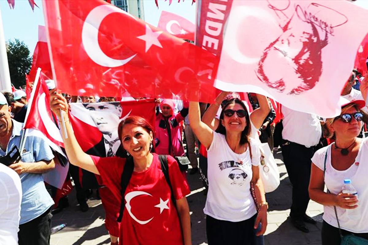 Η διαδήλωση οργανώνεται μετά το αποτυχημένο πραξικόπημα κι ενώ ο πρόεδρος Ρετζέπ Ταγίπ Ερντογάν σφίγγει τον κλοιό ελέγχου γύρω από τη χώρα.