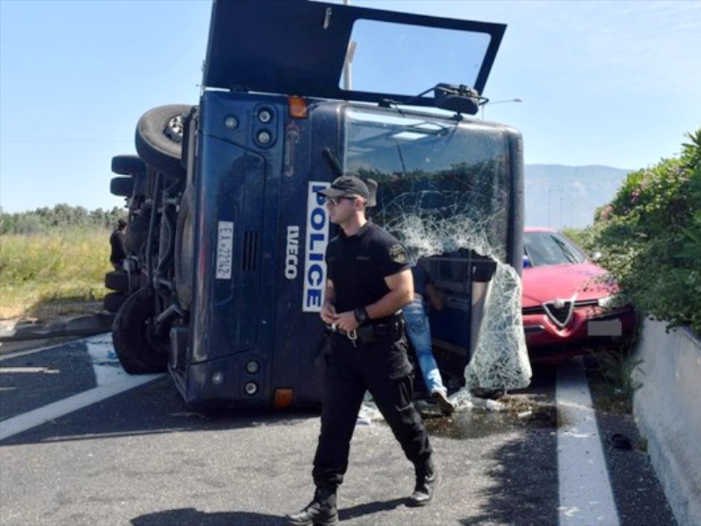 Επτά αστυνομικοί και έξι κρατούμενοι τραυματίστηκαν πριν από λίγο όταν αναποδογύρισε μεταγωγικό όχημα της Διεύθυνσης Μεταγωγών δικαστηρίων Αθηνών στον δρόμο από Κόρινθο προς Τρίπολη.
