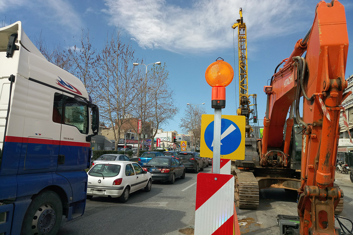 Οι μπουλντόζες ξεκίνησαν να σκάβουν για το έργο αντιπλημμυρικής προστασίας αλλά η κυκλοφοριακή συμφόρηση ειδικά σε ώρες αιχμής είναι ανυπόφορη με τους οδηγούς να περνούν αρκετή ώρα για να περάσουν από το σημείο.