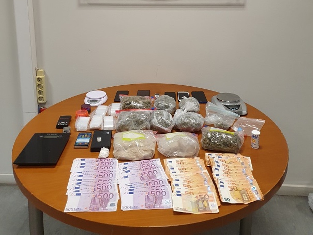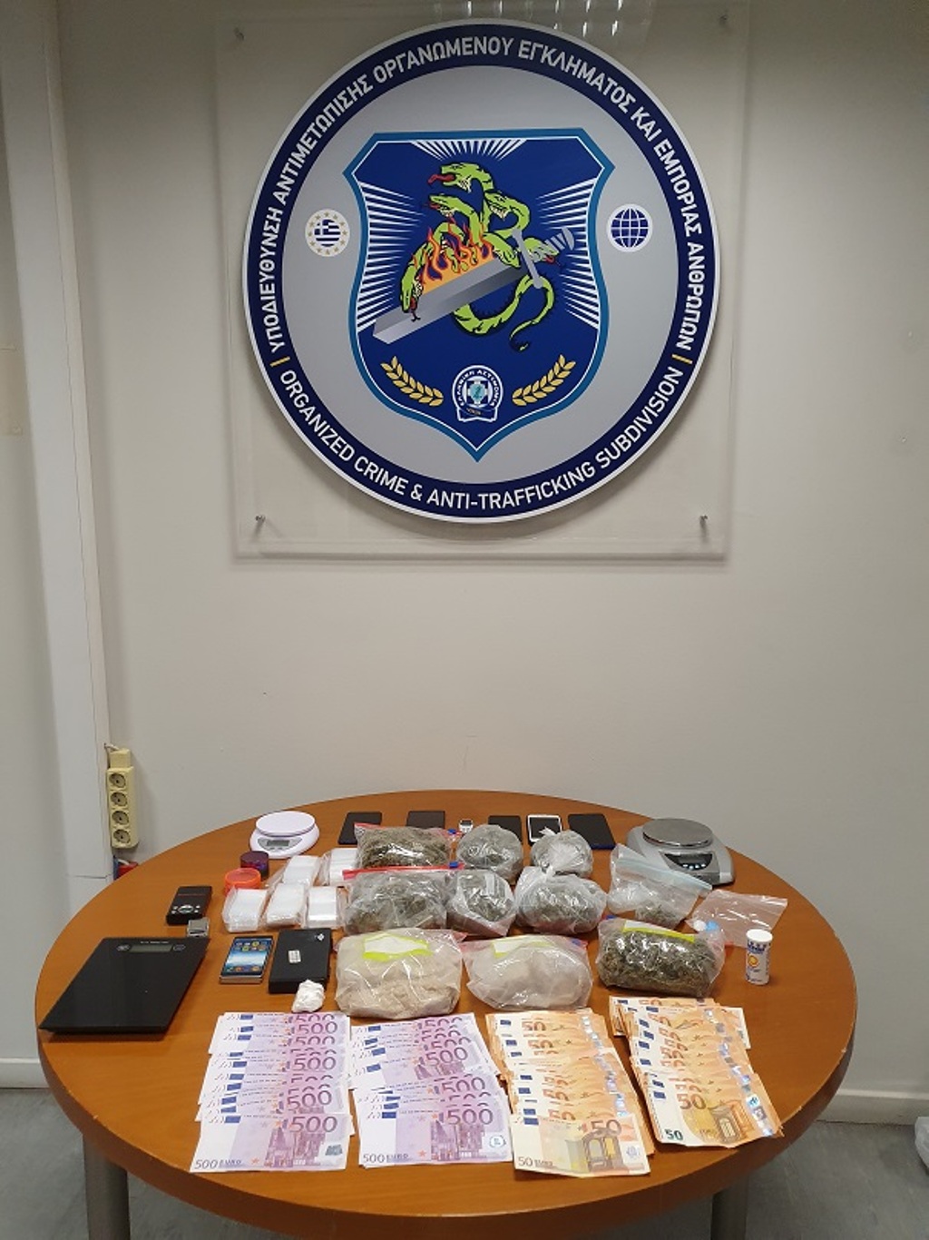 Μετά από συντονισμένες έρευνες σε πέντε οικίες, βρέθηκαν μεταξύ άλλων και κατασχέθηκαν 617 γραμμάρια MDMA, 448 γραμμάρια S Κ UNK, 27 γραμμάρια κοκαΐνης, 8 ηλεκτρονικές ζυγαριές, το χρηματικό ποσό των 22.860 ευρώ, αυτοσχέδιο σύστημα υδροπονικής καλλιέργειας κάνναβης και πλήθος συσκευασιών.
